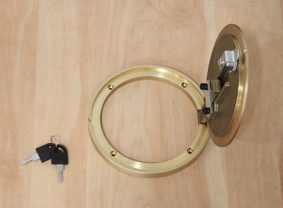 Protect players on the court by installing cover plates over inground sleeve inserts. The 6422 brass cover plate has a 8″ O.D. (6-5/8″ I.D.) hinged cover that locks into place.