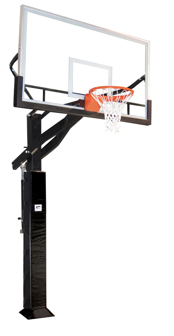 Take pro basketball games outdoors with the GP12G72DM All Pro Jam system. Designed for athletes of all ages and activity levels, the hoop can be adjusted from youth to competitive heights by simply engaging the post actuator and locking into place. The 6″ x 8″ post features a 48″ safe play area, 42″ x 72″ glass backboard, and collegiate breakaway rim. The patented Quick-Connect⢠system allows for outdoor installation ease.