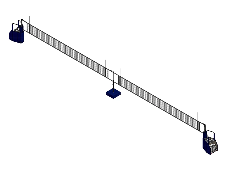 The GoCourt® systems are sleeveless and portable volleyball systems that eliminates the need for drilling and installing sleeves into your gym floor. This innovative design allows you to easily wheel your entire system in and out of the way of other court activities in just minutes. Everything you need to play is included with the system, including portable bases with wheels, referee stand, safety pads and a premium net. The Go Court® can be custom-manufactured to meet the specific requirements of any facility and is available in one or two court configurations.