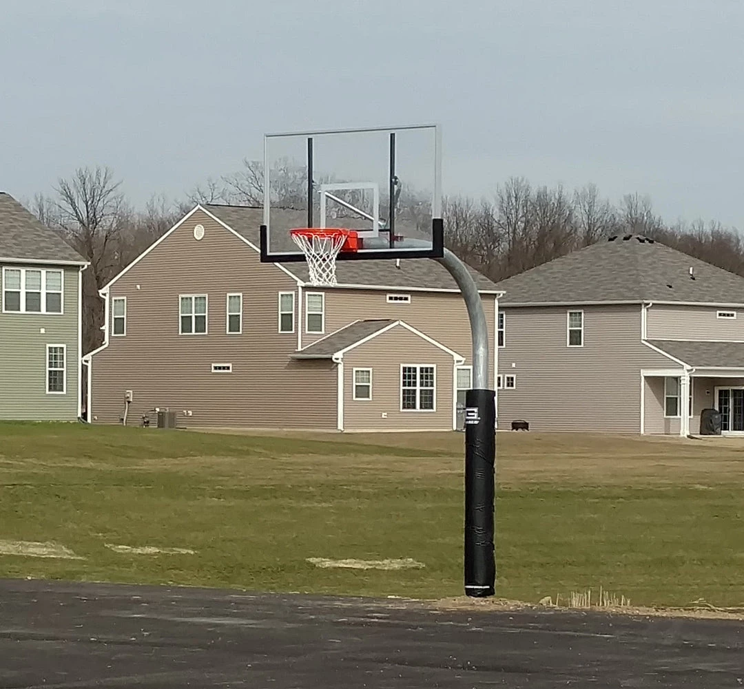 Creating an outdoor basketball court for the most rigorous games starts with the PK6040 heavy-duty gooseneck playground package. This beefy package features a 5-9/16″ O.D. gooseneck post with 6′ safe play area, 42″ x 72″ acrylic backboard, and double breakaway rim.