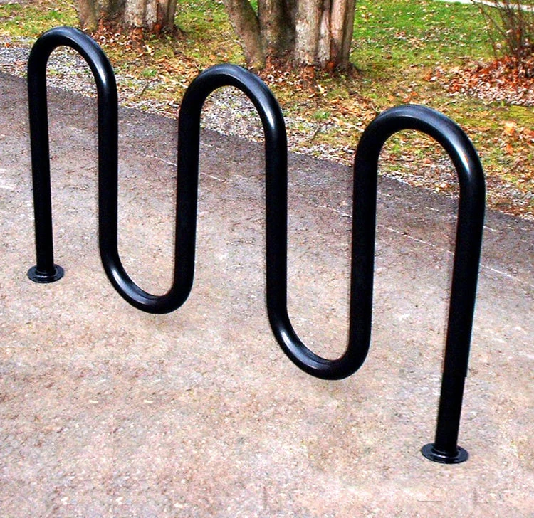 Loop-Style Bike Racks are popular for their long-lasting durability and sleek design. Great for schools, playgrounds, parks, camps, and retail centers. Constructed of 2 3/8â high-tensile galvanized steel pipe with cold-galvanized welds. Finish is painted with a durable outdoor aluminum enamel for protection in harsh outdoor climates. Optional baked-on polyester powdercoat finish available in your choice of black, bronze, blue, red, or green. Permanent/inground installation is standard for all loop bike racks. Optional surface-mount installation is available; please call for quotation.