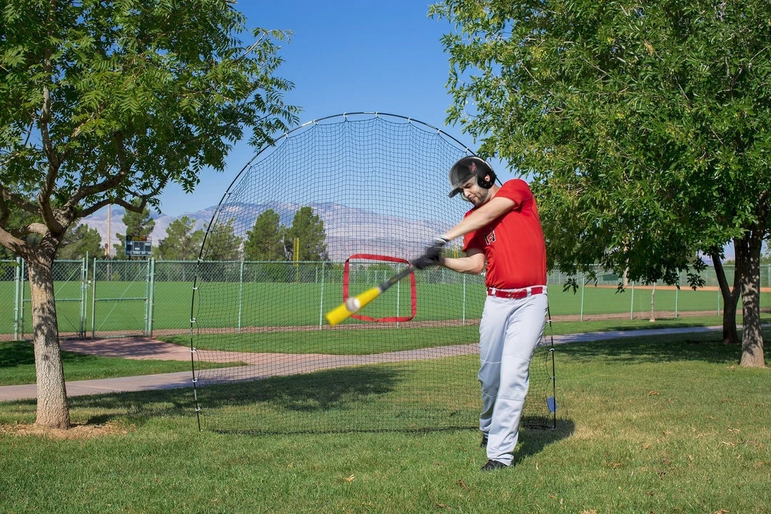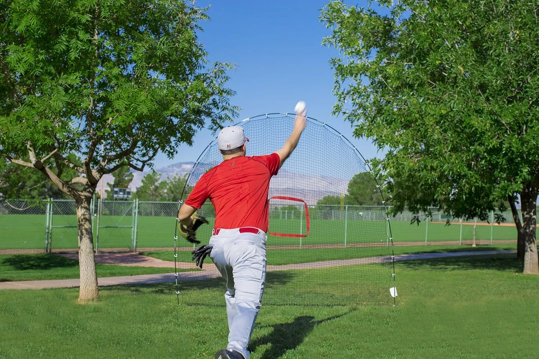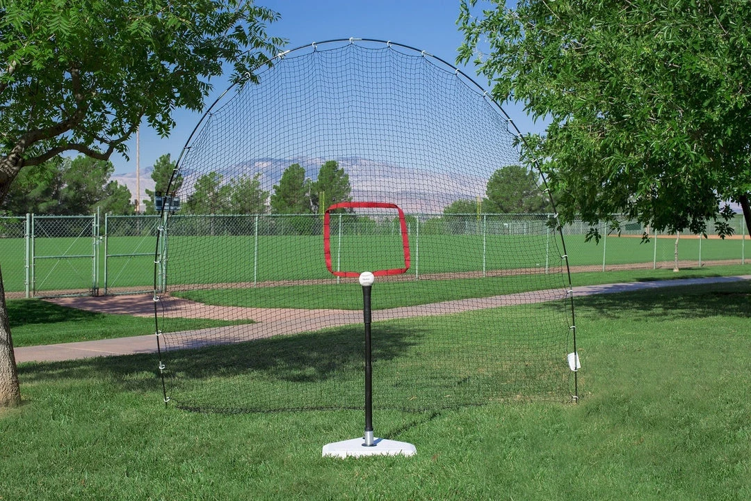 Features makes the HittingStation Net quick and easy to set-up and take-down. With the strong 1” poly netting the HittingStation Net is perfect for baseball, softball, and even soccer.