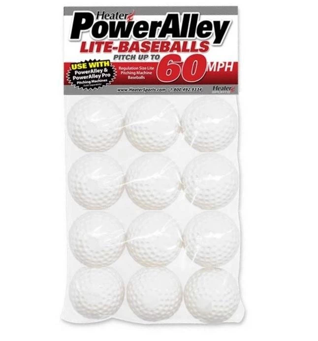 PowerAlley 60 MPH Lite-Balls weigh half the weight of real baseballs. This allows younger players to hit a lighter ball and develop better hand-eye coordination. Use with both the PowerAlley and PowerAlley Pro pitching machines.