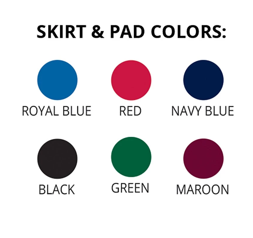 Available in: Royal Blue, Black, Red, Green, Navy Blue, and Maroon or No skirt or pad.