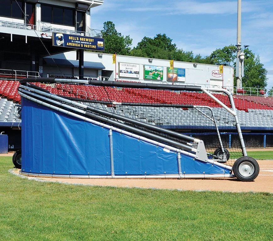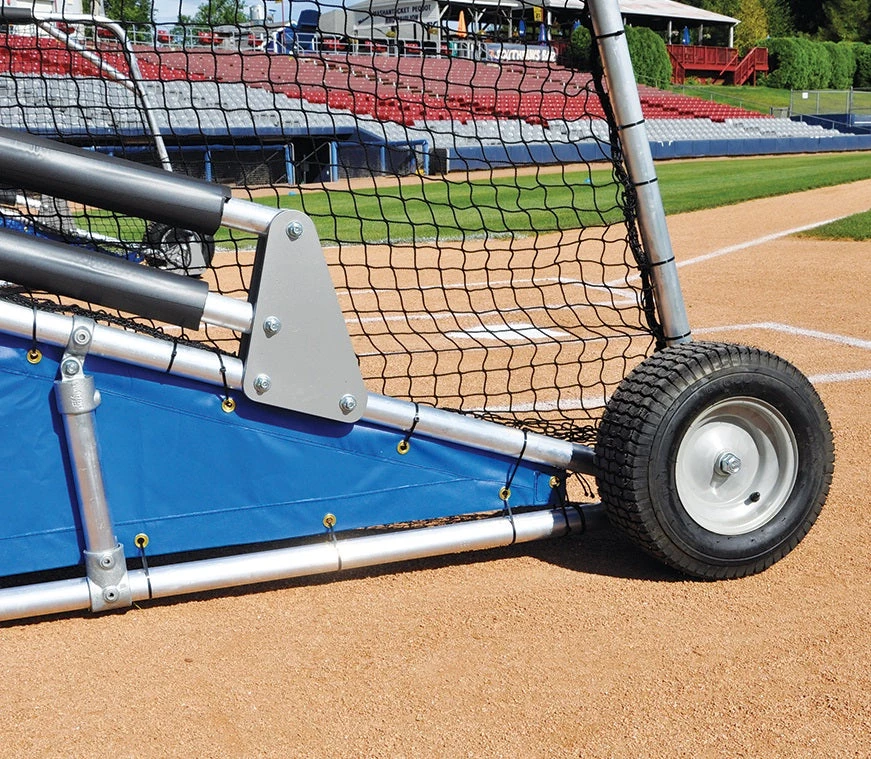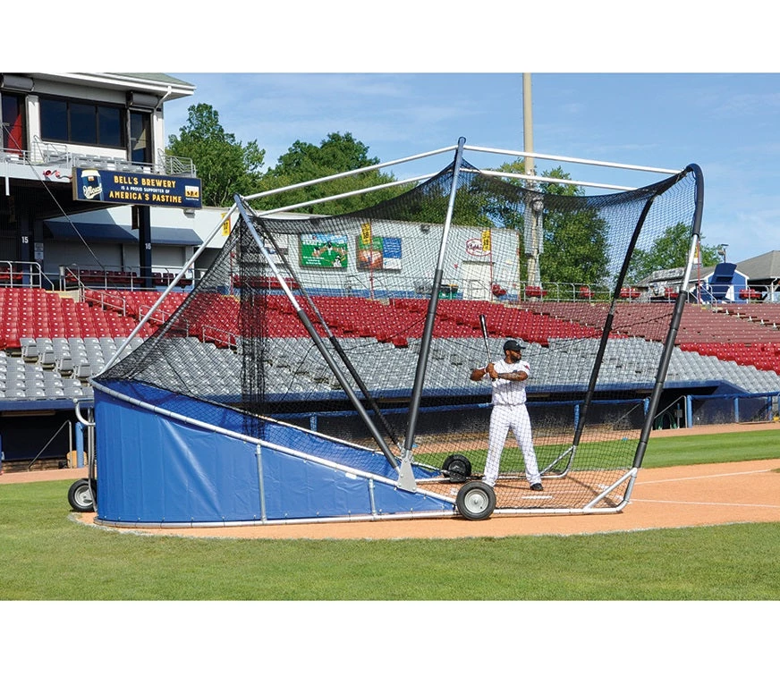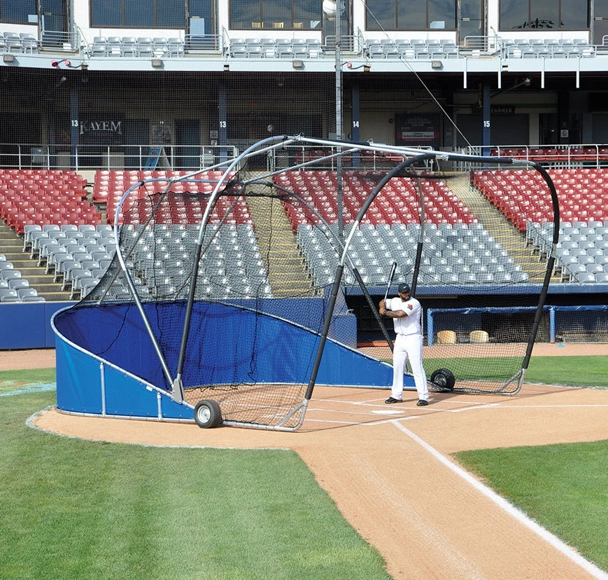 Heavy-duty portable batting cage for spring training camps, semi-professional, and collegiate use.