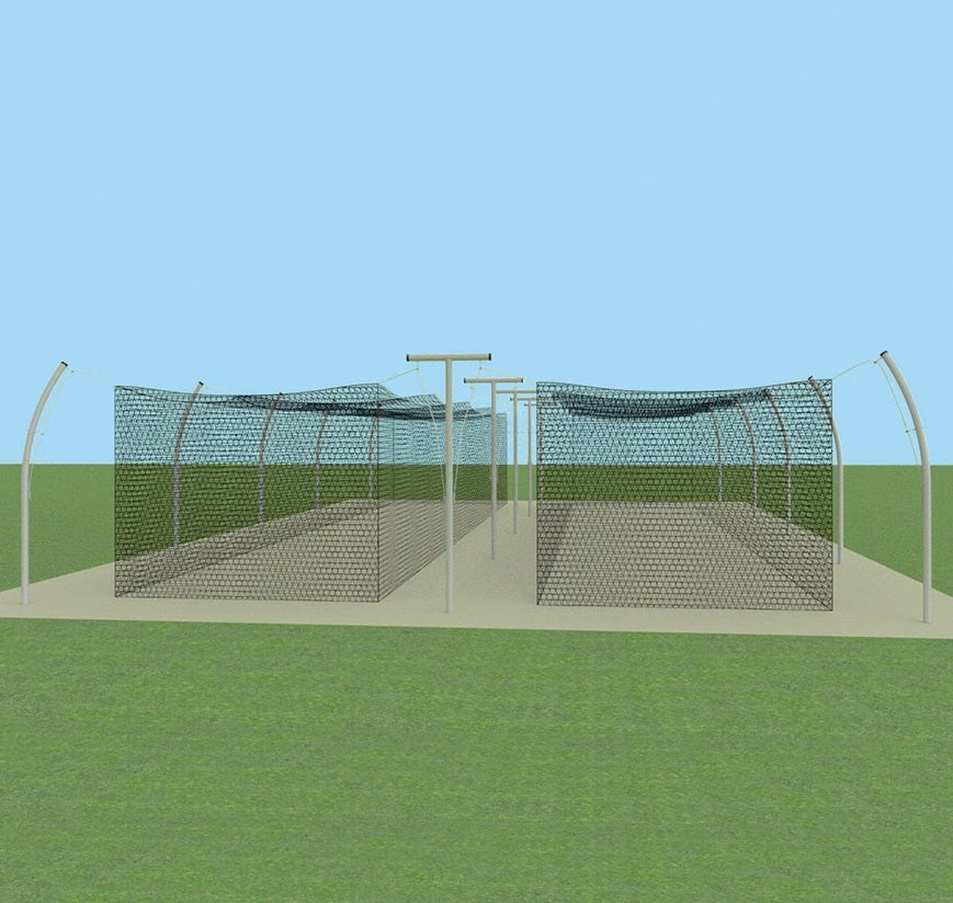 Clean, side by side frame design with less structure for balls to ricochet off. Individual hoist lines make for easy installation/removal of net!