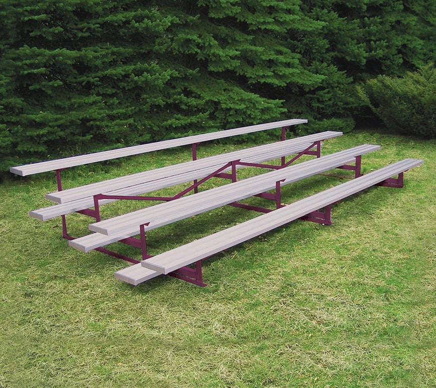 - 4 row bleacher does not exceed 30″ in height. Guard rails may not be needed (check local codes).