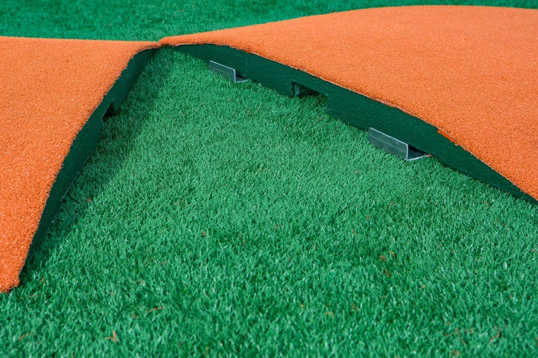 Portolite pitching mounds are covered with the highest quality turf available in Clay or Green colors. Portolite simulated pitching rubbers last ten times as long and have a hidden wear pad underneath the turf immediately in front of the pitching rubber. Built with gentle slopes and tapered edges to give the pitcher the highest level of comfort. Two Piece Full Length Game Mounds are available in 6”, 8” and 10” sizes.
