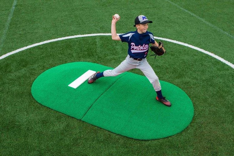 Portolite baseball pitching mounds give the pitcher the feel of a regulation baseball mound, while also allowing field crews the ability to move it with ease. Each baseball pitching mound is designed with a full body, high performance poly protected resilient core with fiberglass reinforcement giving the pitcher a solid, no bounce, yet cushioned baseball mound that reduces knee and ankle strain.