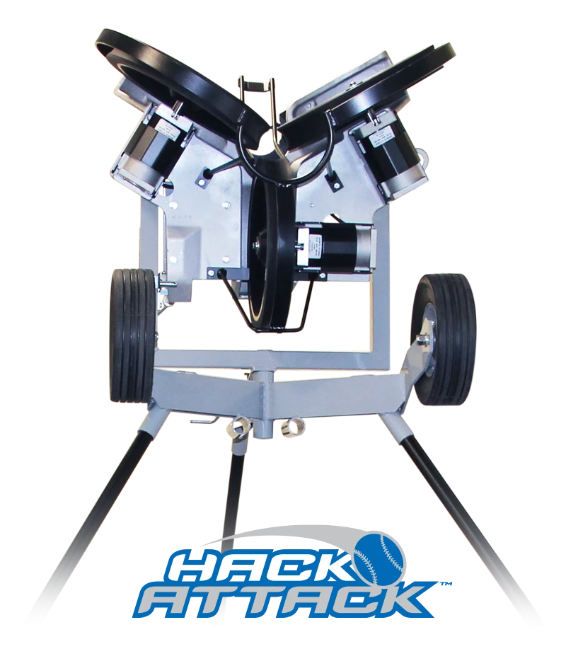 The Hack Attack has a unique three-wheel design that allows you to see the ball clearly and fully all the way through the feeding motion, acceleration and release, just like a live pitcher.