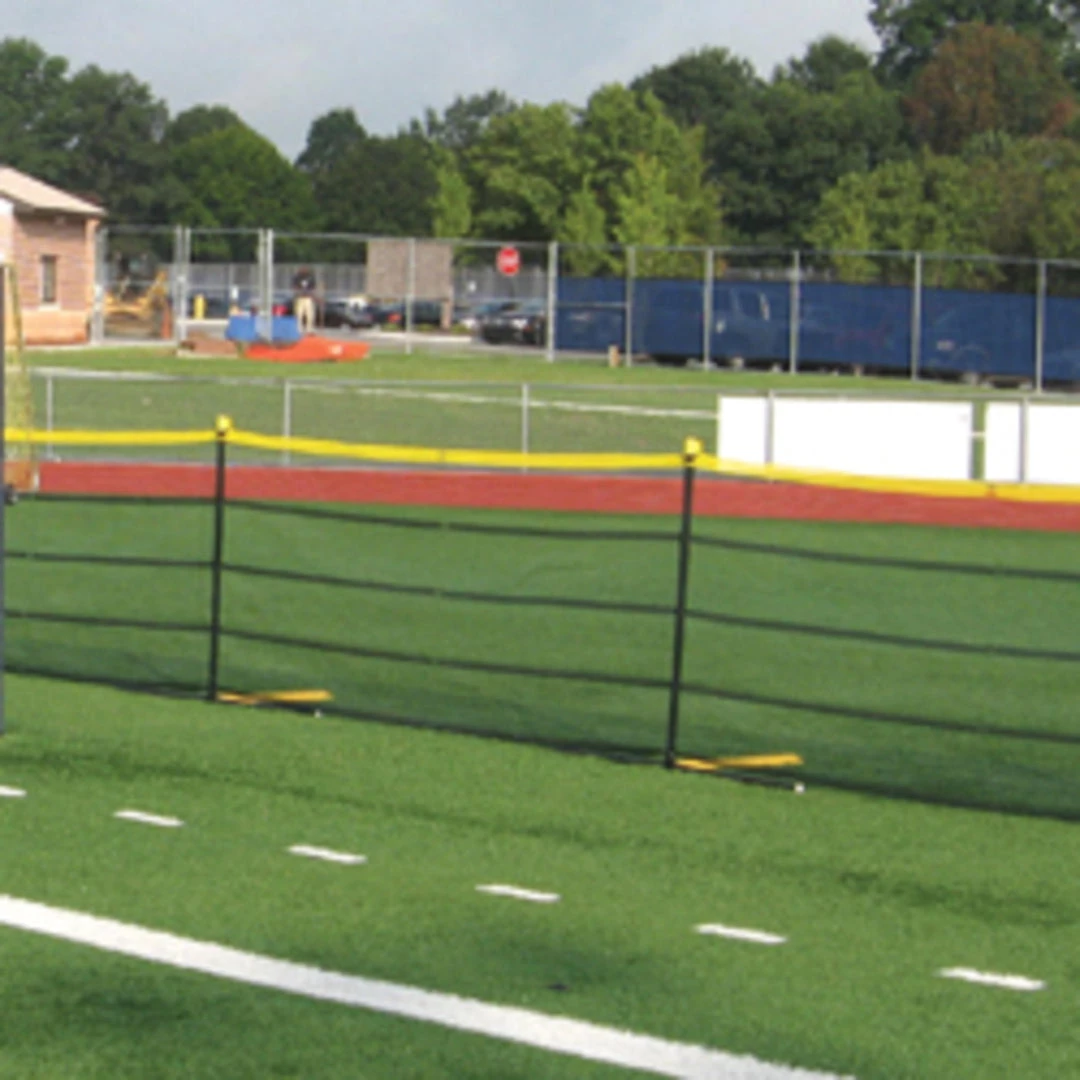 Above ground fencing requires no holes. Use your portable fencing on synthetic turf, asphalt, concrete, or natural turf. High gloss PVC poles slide easily into sewn vinyl pockets for easy assembly and each base pipe is weighted for maximum stability.