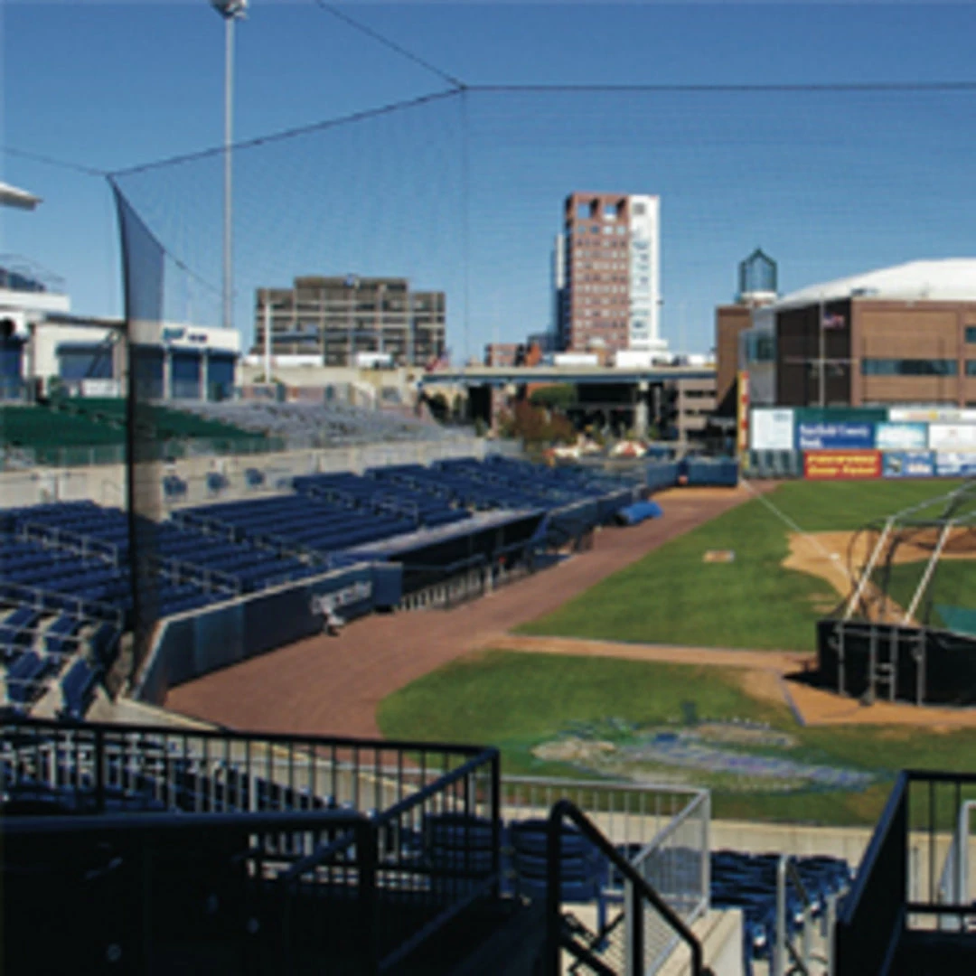 Custom Knotted Netting with 1-3/4″ Mesh, 2.5mm Cord, 3/8″ Rope Border. Suggested Use: Baseball Backstop – Batting Cage Netting – Foul Ball Barrier Net – Protective Screens – Barrier Netting – Discus Cage Netting. Custom nets are made to your specification to cover any sport or application. We offer nets hung on the diamond or on the square and your choice of rope borders or vinyl tape with grommets. Please contact us with your measurements and application. Netting is our specialty!