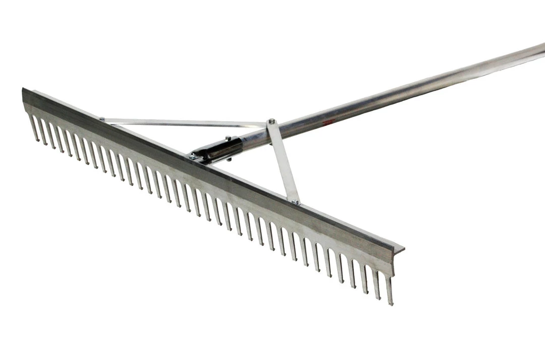All aluminum construction designed for institutional use. Durable & Lightweight with oversized teeth for easy field grooming. Use one side to rake & the other side to level.