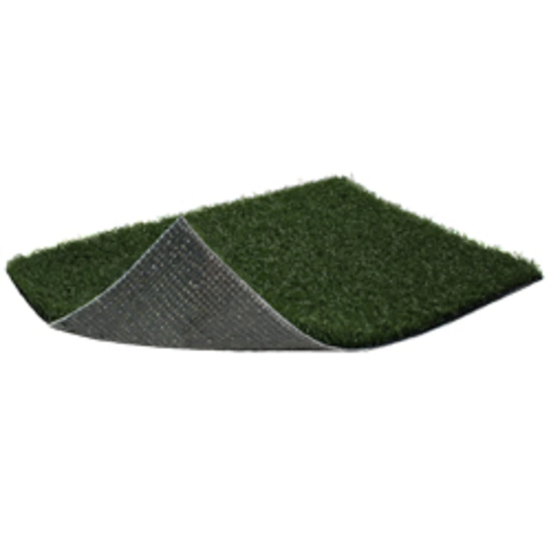 Economy turf features a 22oz face weight, 9/16″ pile height, 3mm backing and comes in a 12 foot wide roll. Pro Turf is perfect for a variety of surfaces including indoor sports facilities, outdoor sports fields, and batting cages. Urethane and foam backed turf can be glued down for permanent installations on concrete or asphalt. Minimum order of 144 square feet (12′ x 12′).