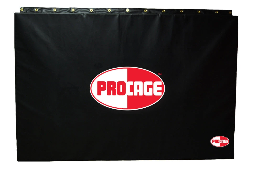 4′ x 6′ high density foam thud pad. Black vinyl cover with grommets at top and bottom for hanging.