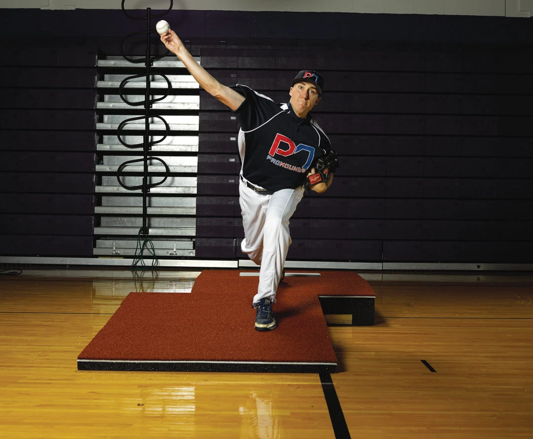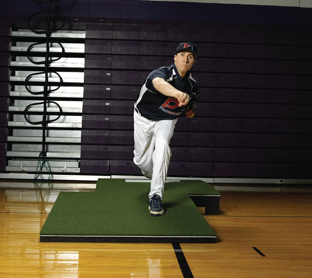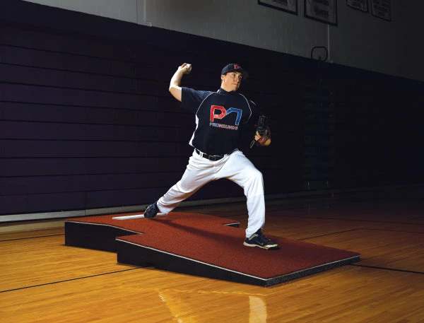 This indoor pitching mound has a convenient two-piece design that makes it easier to use, handle and store. The design allows your pitchers to offset the landing area, allowing for a 6’ landing area for left or right-handed pitchers. This mound is constructed from lightweight, high density foam, and spike resistant artificial turf. The high density foam creates a durable, lightweight design. This technology seals the foam and will not scratch gym floors. The spike resistant artificial turf completes the mound giving you a real game feel.